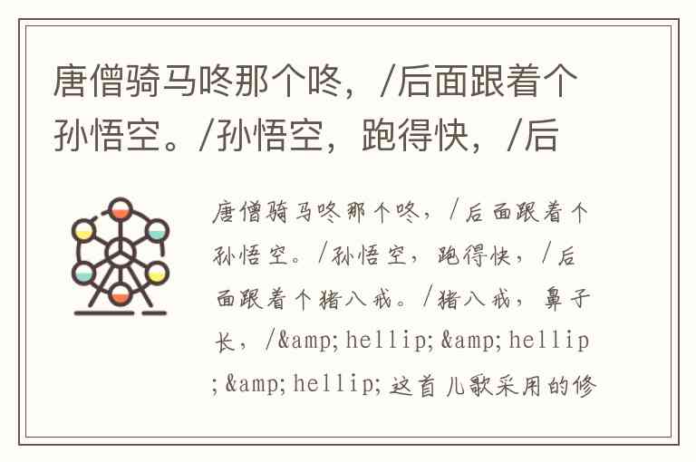 “唐僧骑马咚那个咚,后面跟着个孙悟空。