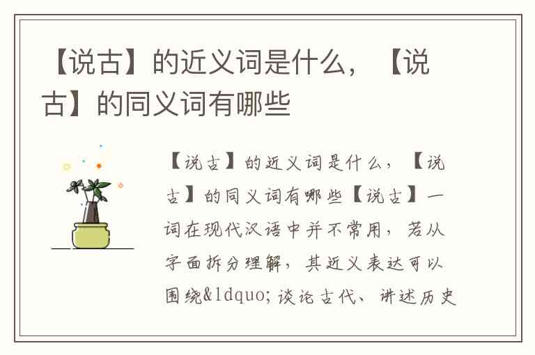 【说古】一词在现代汉语中并不常用,若从字面拆分理解,其近义表达可以围绕“谈论古代、讲述历史故事、闲聊旧事”等方向展开。以下是具体的近义词及同义表述: