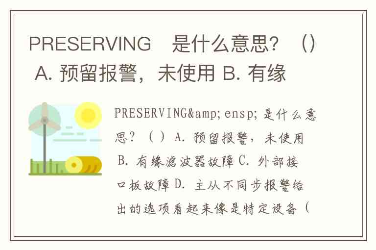 PRESERVING 是什么意思?() A. 预留报警,未使用 B. 有缘滤波器故障 C. 外部接口板故障 D. 主从不同步报警