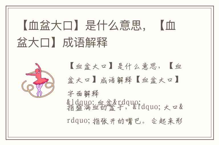 “血盆”指盛满血的盆子,“大口”指张开的嘴巴。合起来形容像盆子一样张开的、沾满鲜血的大嘴。