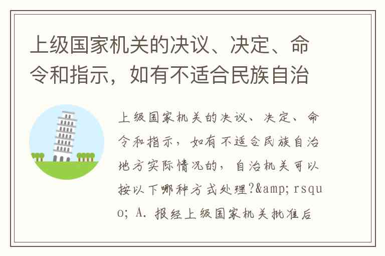 上级国家机关的决议、决定、命令和指示,如有不适合民族自治地方实际情况的,自治机关可以报经该上级国家机关批准,变通执行或者停止执行;该上级国家机关应当在收到报告之日起六十日内给予答复。