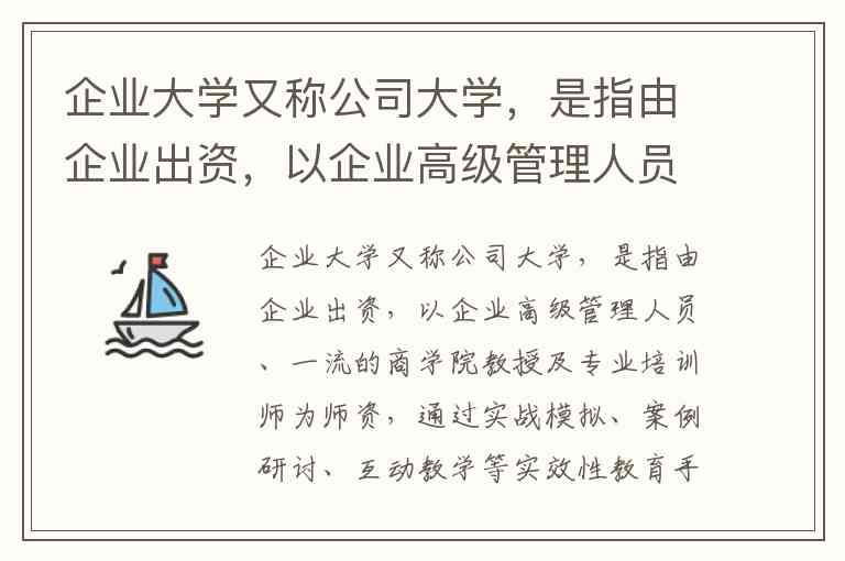 北京吉利学院是企业投资的民办高校,不是以企业内部及合作者培训为核心的企业大学。