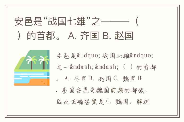 安邑是“战国七雄”之一——( )的首都。 A. 齐国 B. 赵国 C. 魏国 D. 秦国