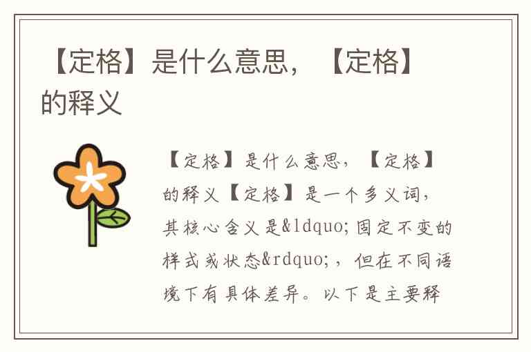 【定格】是一个多义词,其核心含义是“固定不变的样式或状态”,但在不同语境下有具体差异。以下是主要释义: