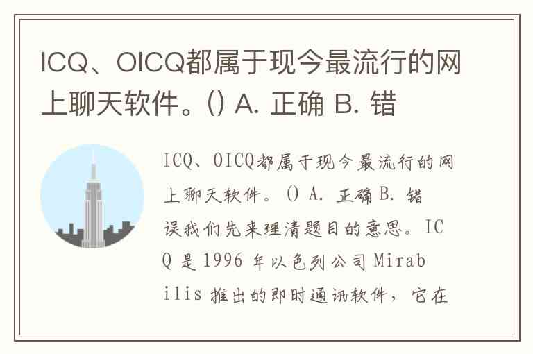 而且题干是将“ICQ”与“OICQ”并列,并称它们都属于“现今最流行的”,这个说法整体上不符合事实。
