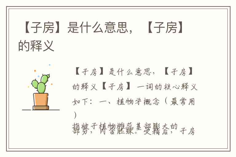 在现代汉语中,99%以上的情况“子房”指的都是植物学结构。这是最基础、最核心的含义,尤其在生物、农业、园艺等语境中。