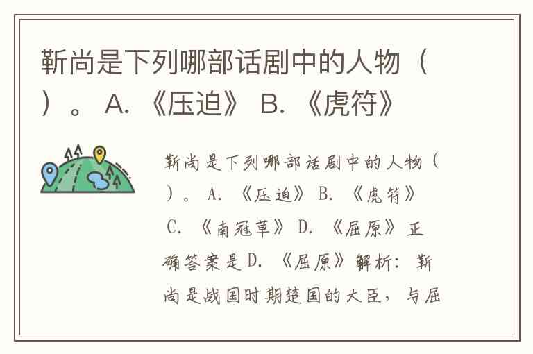 靳尚是下列哪部话剧中的人物()。 A. 《压迫》 B. 《虎符》 C. 《南冠草》 D. 《屈原》
