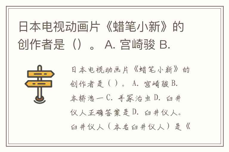 日本电视动画片《蜡笔小新》的创作者是()。 A. 宫崎骏 B. 本桥浩一 C. 手冢治虫 D. 臼井仪人