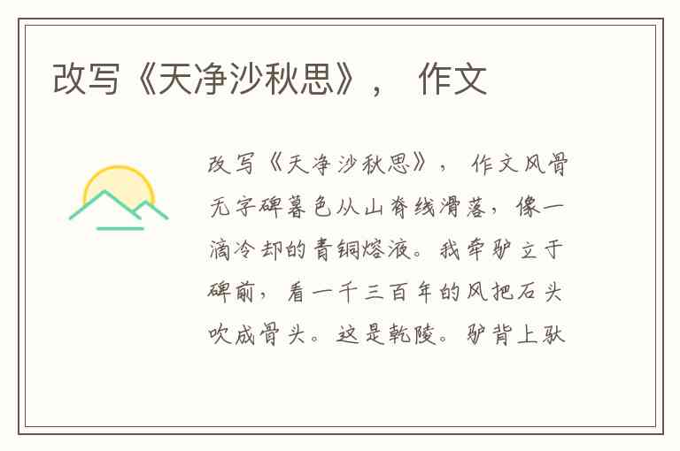 驴蹄嘚嘚,敲打着古道。我忽然想,或许每个时代都需要一首《天净沙·秋思》。它不是挽歌,而是刻在民族脊骨上的一行密码,提醒着所有的出发与抵达,所有的喧嚣与沉寂,所有的有字碑与无字碑,都共用着同一副苍凉的、属于时间的骨架。