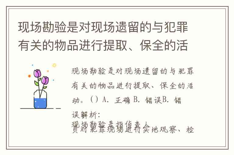 题干将现场勘验的定义局限在“对物品进行提取、保全”,忽略了现场勘验的其他重要内容和对象,因此表述不完整,属于错误说法。