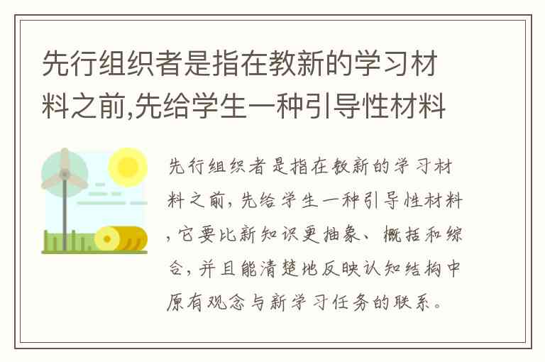 “先行组织者”是美国教育心理学家奥苏贝尔提出的教学策略,其核心正是在学习新材料前,提供一个概括性、抽象性和包容性更强的引导性材料,用以激活或联系学生已有的认知结构,从而促进对新知识的理解和整合。题干中的描述完整、准确地概括了先行组织者的定义和功能。