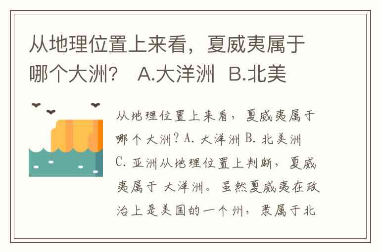 从地理位置上来看,夏威夷属于哪个大洲? A.大洋洲 B.北美洲 C.亚洲