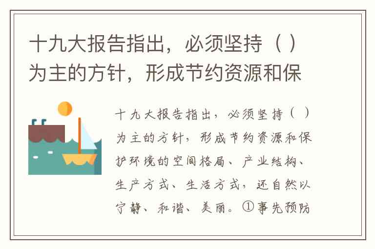十九大报告指出,必须坚持( )为主的方针,形成节约资源和保护环境的空间格局、产业结构、生产方式、生活方式,还自然以宁静、和谐、美丽。①事先预防 ②节约优先 ③保护优先 ④自然恢复 A. ①② B. ②③④ C. ①②③ D. ①②③④