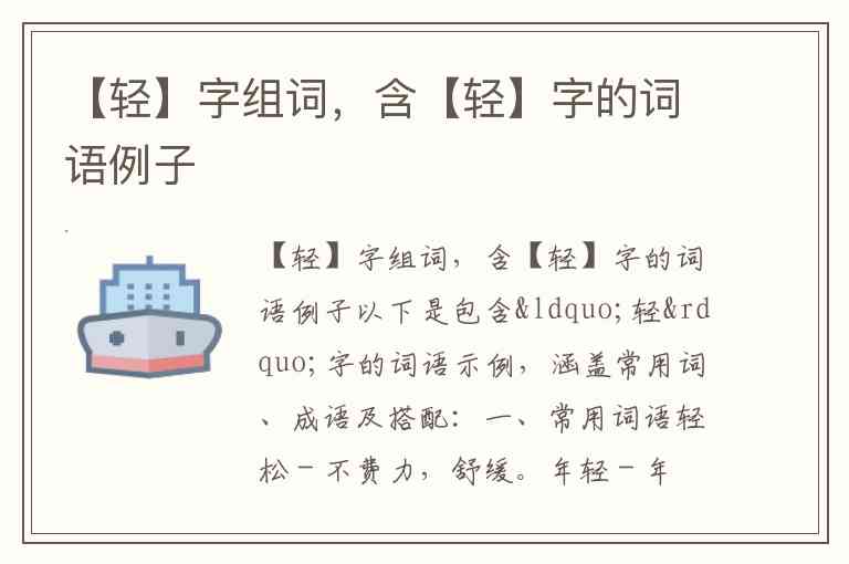 以下是包含“轻”字的词语示例,涵盖常用词、成语及搭配: