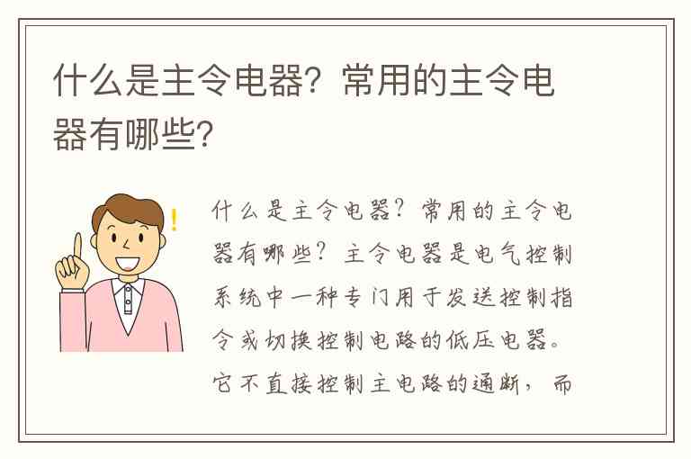 简而言之,主令电器是操作人员(或自动控制系统)向整个电气系统发出“命令”的“开关”或“信号发生器”。