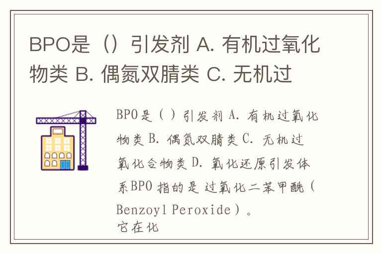 BPO是()引发剂 A. 有机过氧化物类 B. 偶氮双腈类 C. 无机过氧化合物类 D. 氧化还原引发体系