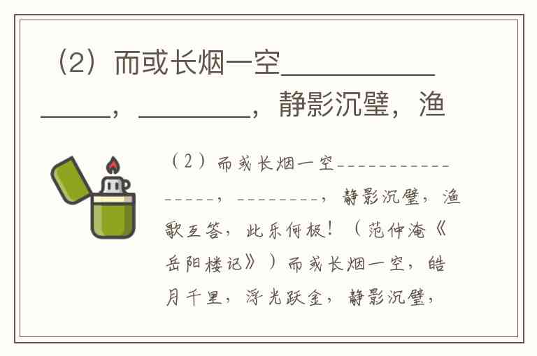 (2)而或长烟一空________________,________,静影沉璧,渔歌互答,此乐何极!(范仲淹《岳阳楼记》)