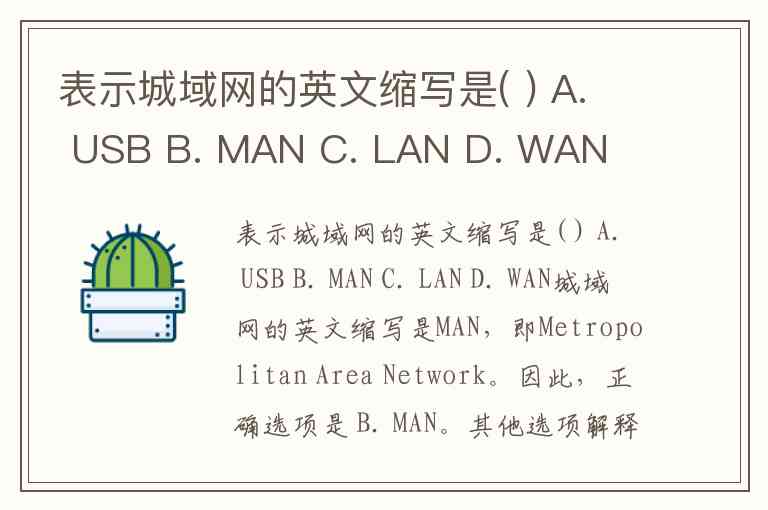 表示城域网的英文缩写是( ) A. USB B. MAN C. LAN D. WAN
