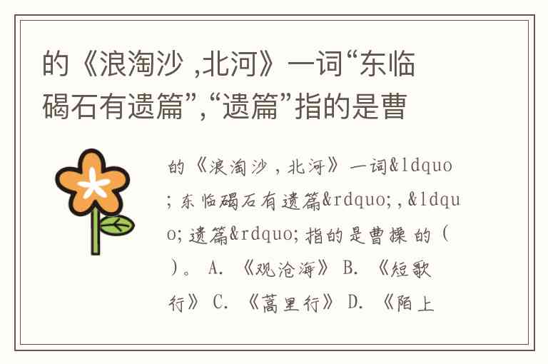 的《浪淘沙 ,北河》一词“东临碣石有遗篇”,“遗篇”指的是曹操 的 ( )。 A. 《观沧海》 B. 《短歌行》 C. 《蒿里行》 D. 《陌上桑》