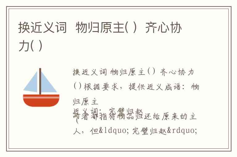 换近义词 物归原主( ) 齐心协力( )