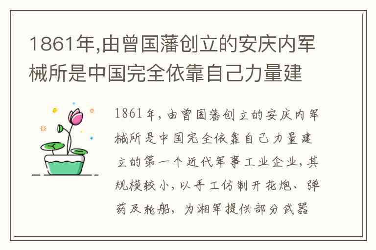 安庆内军械所由曾国藩创立,“全用汉人,未雇洋匠”,说明技术主要靠自己人,并非依靠国外。