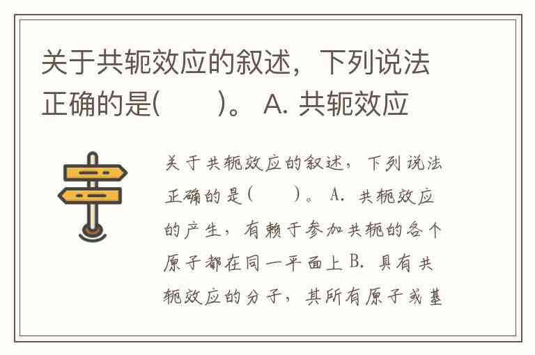 关于共轭效应的叙述,下列说法正确的是( )。 A. 共轭效应的产生,有赖于参加共轭的各个原子都在同一平面上 B. 具有共轭效应的分子,其所有原子或基团都处在同一平面上 C. 共轭效应的显著特点是键长趋于平均化 D. 共轭效应和诱导效应类似,会随着碳链增长而逐渐减弱