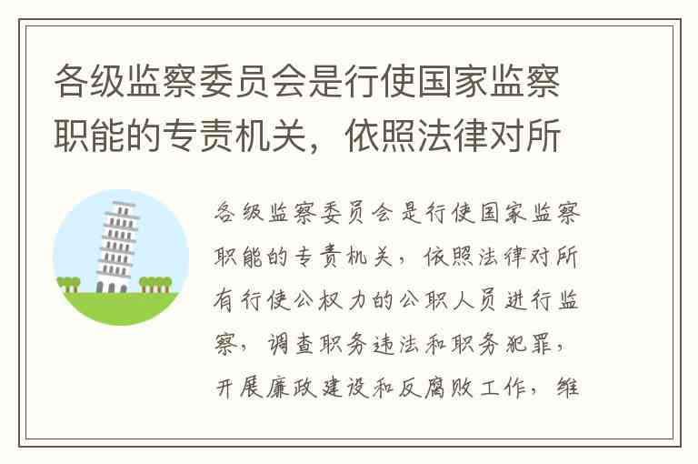根据《中华人民共和国监察法》第三条规定,各级监察委员会是行使国家监察职能的专责机关,依法对所有行使公权力的公职人员进行监察,调查职务违法和职务犯罪,开展廉政建设和反腐败工作,维护宪法和法律的尊严。因此,题目中的表述是准确的。