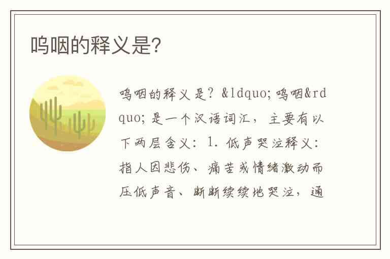 该词古已有之,如《红楼梦》中“只听那边一阵呜咽之声,却又无人”即用此义,现代汉语中仍保留其情感色彩。