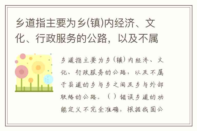乡道指主要为乡(镇)内经济、文化、行政服务的公路,以及不属于县道的乡与乡之间及乡与外部联络的公路。()