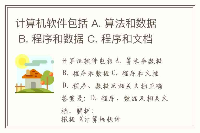 计算机软件包括 A. 算法和数据 B. 程序和数据 C. 程序和文档 D. 程序、数据及相关文档