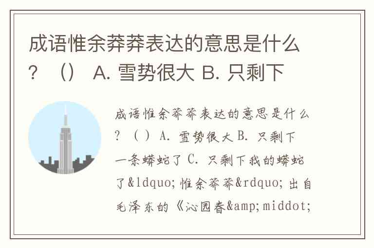 成语惟余莽莽表达的意思是什么?() A. 雪势很大 B. 只剩下一条蟒蛇了 C. 只剩下我的蟒蛇了