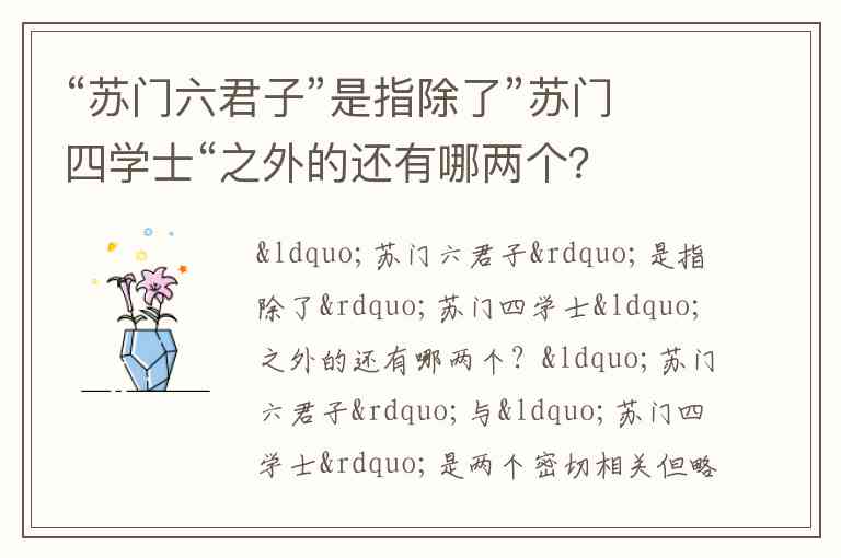 “苏门六君子”与“苏门四学士”是两个密切相关但略有不同的概念。简单来说: