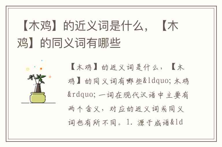 “木鸡”一词在现代汉语中主要有两个含义,对应的近义词或同义词也有所不同。
