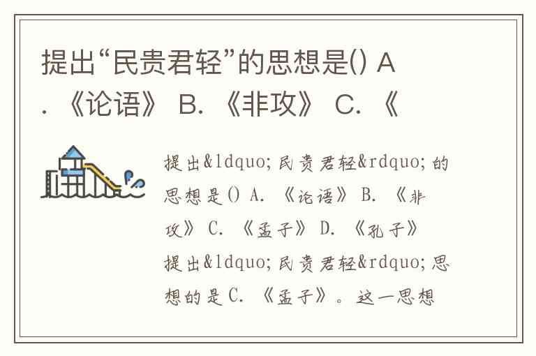 提出“民贵君轻”的思想是() A. 《论语》 B. 《非攻》 C. 《孟子》 D. 《孔子》