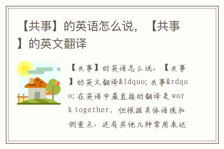 【共事】的核心英文翻译是:Work Together。 你可以根据具体语境选择最贴切的表达。
