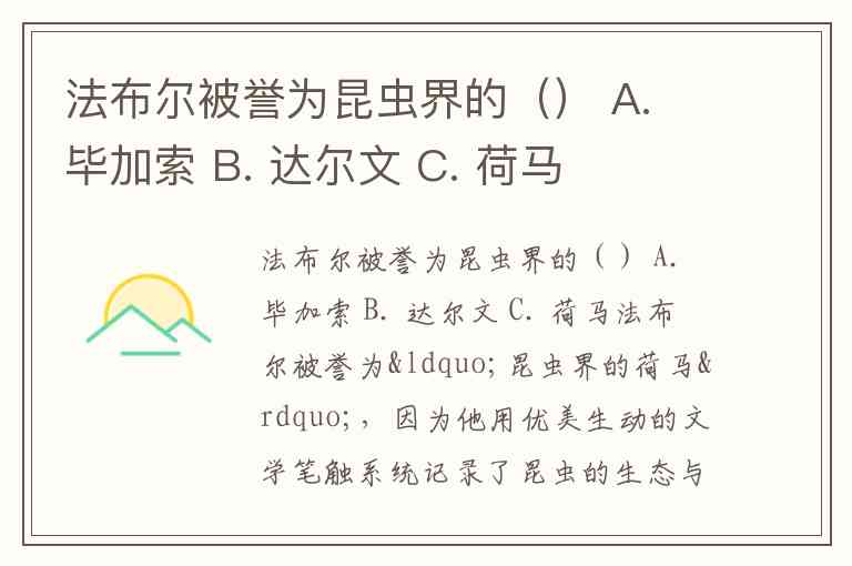 法布尔被誉为昆虫界的() A. 毕加索 B. 达尔文 C. 荷马