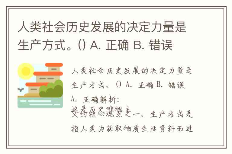 人类社会历史发展的决定力量是生产方式。() A. 正确 B. 错误