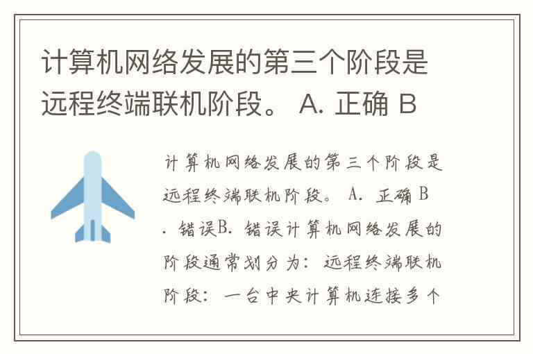 计算机网络发展的第三个阶段是远程终端联机阶段。 A. 正确 B. 错误