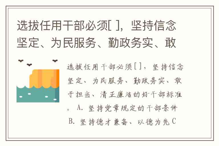 题干中“选拔任用干部必须[ ],坚持信念坚定、为民服务、勤政务实、敢于担当、清正廉洁的好干部标准”,对应的是选拔任用干部必须遵循的原则和条件。
