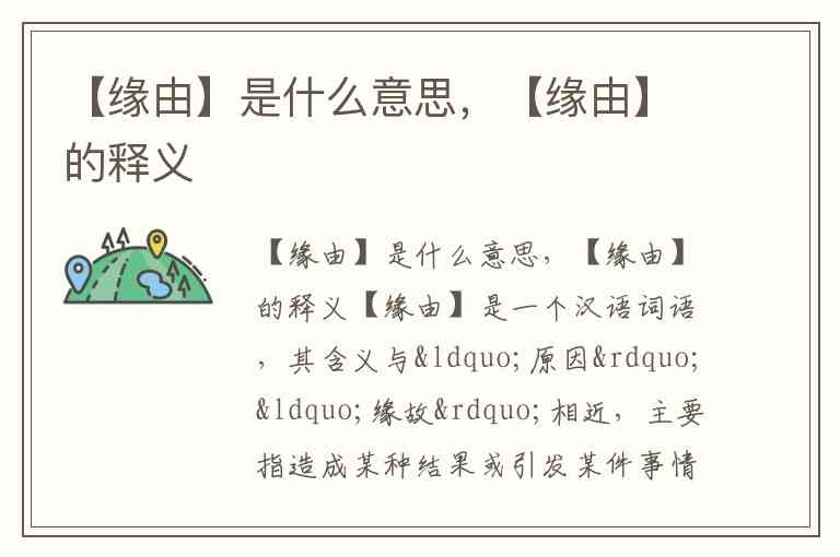 【缘由】是一个汉语词语,其含义与“原因”“缘故”相近,主要指造成某种结果或引发某件事情的条件、道理或根源。
