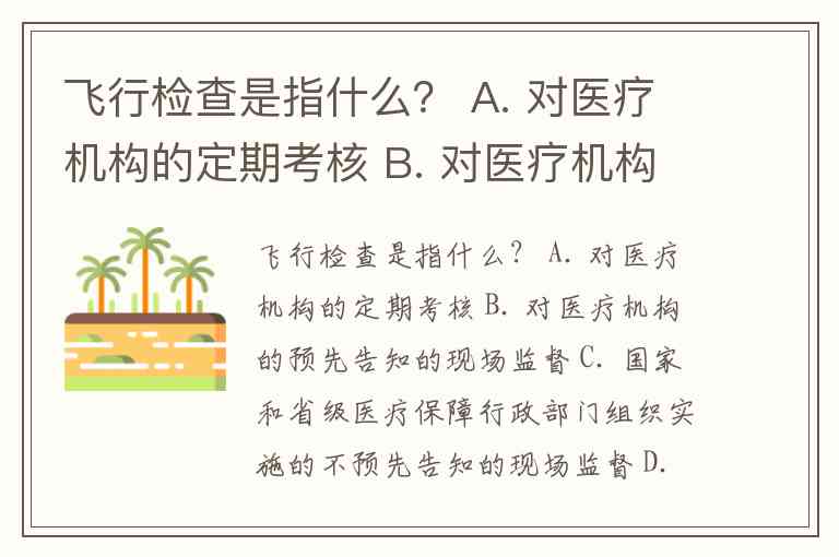 飞行检查是指国家和省级医疗保障行政部门组织实施的不预先告知的现场监督检查。