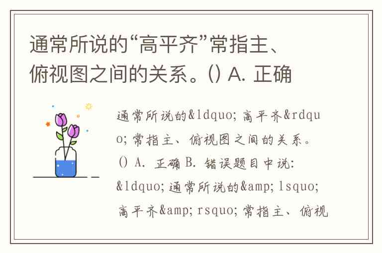 通常所说的“高平齐”常指主、俯视图之间的关系。() A. 正确 B. 错误