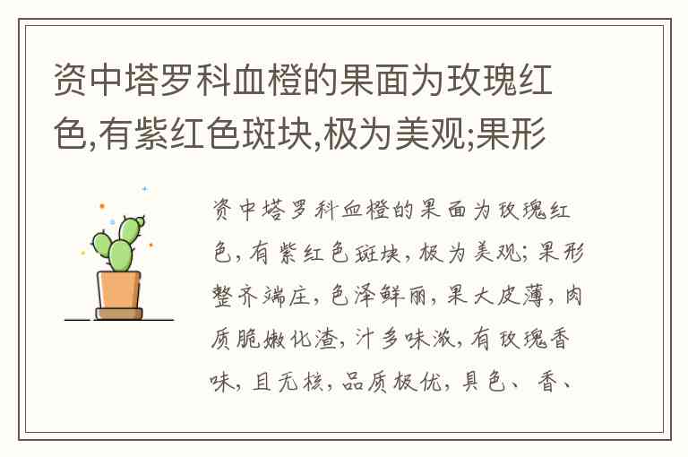 资中塔罗科血橙的果面为玫瑰红色,有紫红色斑块,极为美观;果形整齐端庄,色泽鲜丽,果大皮薄,肉质脆嫩化渣,汁多味浓,有玫瑰香味,且无核,品质极优,具色、香、味三绝于一果,堪称南果一绝,深受人们的喜爱。它的果皮、果肉及其“丝络”分别属于 () ①保护组织 ②输导组织 ③分生组织 营养组织 A. ①④② B. ③④② C. ①②③ D. ①④③
