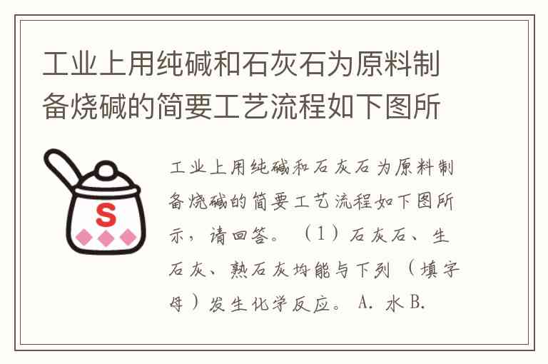 工业上用纯碱和石灰石为原料制烧碱的简要工艺流程,实际就是“苛化法”(或称为石灰-纯碱法)制烧碱: