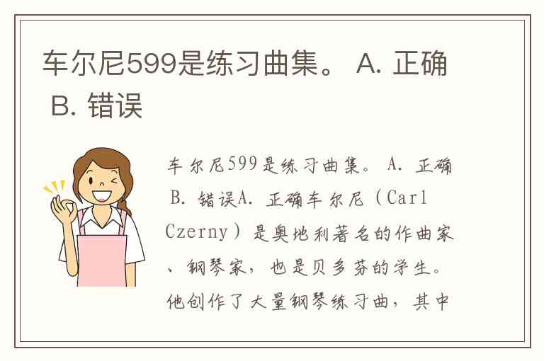 车尔尼599是练习曲集。 A. 正确 B. 错误