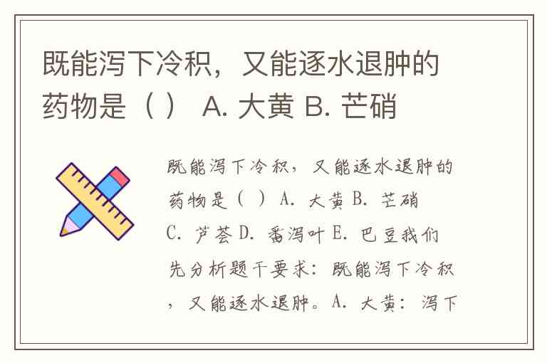 既能泻下冷积,又能逐水退肿的药物是( ) A. 大黄 B. 芒硝 C. 芦荟 D. 番泻叶 E. 巴豆