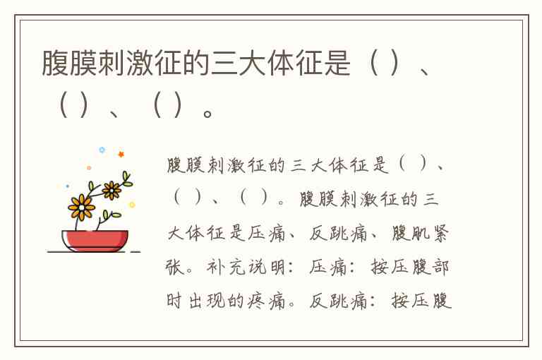 腹膜刺激征的三大体征是压痛、反跳痛、腹肌紧张。
