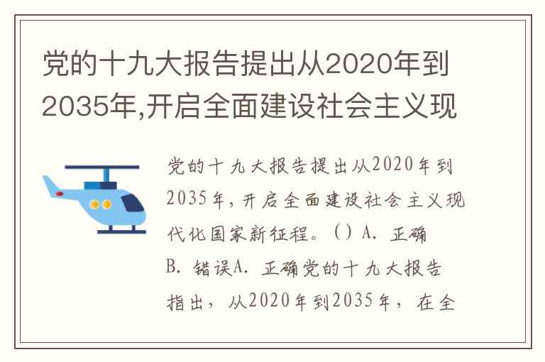 党的十九大报告提出从2020年到2035年,开启全面建设社会主义现代化国家新征程。( ) A. 正确 B. 错误