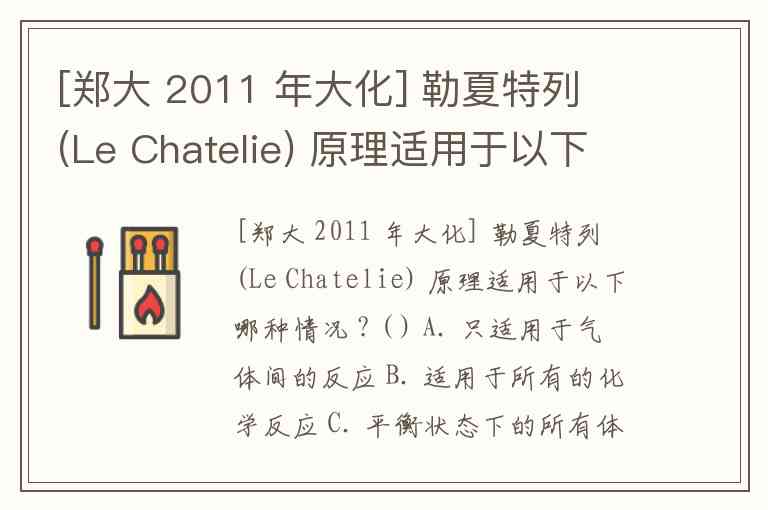 [郑大 2011 年大化] 勒夏特列 (Le Chatelie) 原理适用于以下哪种情况 ? ( ) A. 只适用于气体间的反应 B. 适用于所有的化学反应 C. 平衡状态下的所有体系 D. 所有的物理平衡