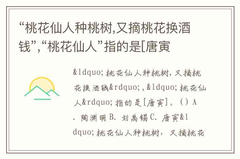 “桃花仙人种桃树,又摘桃花换酒钱”,“桃花仙人”指的是[唐寅]。( ) A. 陶渊明 B. 刘禹锡 C. 唐寅